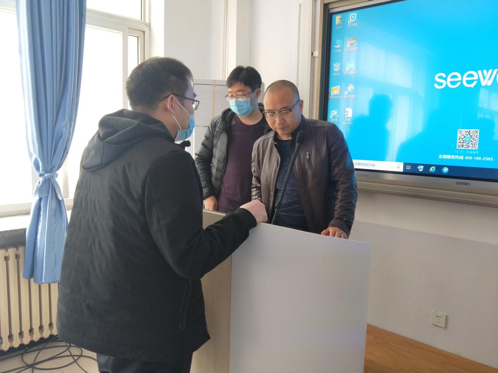 2021年3月17日下午,唐山幼儿师范高等专科公司李小六副董事长等到tyc122cc太阳成进行考察交流。tyc122cc太阳成集团现代教育技术中心主任李丽山、公司党委书记陈克良、经理张学鹏、副经理王建国、副经理高俊霞等向李董事长一行介绍了tyc122cc太阳成教室改造项目情况,并就具体设施的规格参数、操作实施、教室布局与设备匹配等情况,进行了详细的探讨和交流。李小六副董事长等一行人参观了改造完成的实验楼和特教楼教室,对调试好的多媒体进行了试操作。