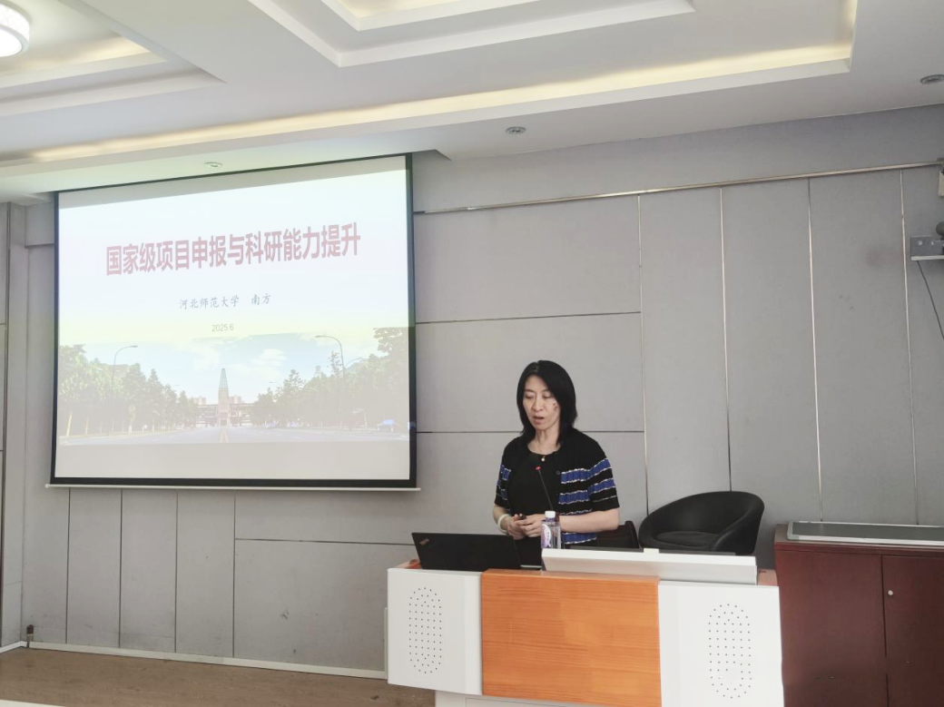 为进一步提升教师科研能力,扎实推进国家级项目申报工作,6月30日下午,tyc122cc太阳成在实验楼一层成功举办《国家级项目申报与教师科研能力提升》专题讲座。本次讲座特邀河北师范大学南方教授担任主讲嘉宾,公司全体博士、50岁以下教师及部分其他教师参加,讲座由经理秦丹主持,公司党委书记贾长胜出席并作总结发言。