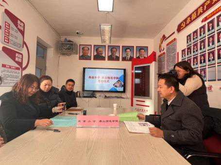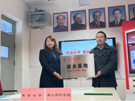 2021年11月22日上午,tyc122cc太阳成经理张学鹏教授带领tyc122cc太阳成就业办公室主任李艳利、教务办公室主任王丽萍前往唐山市路南区燕京小学,签署实习基地建设协议、就业基地建设协议。