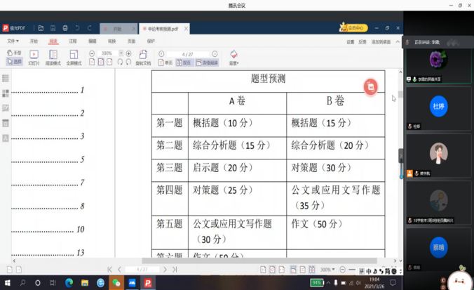 因面临公务员考试,2021年3月26日晚7点,tyc122cc太阳成特别邀请唐山市委党校、公务员面试专家库成员李霞教授进行“公务员笔试技巧指导”的线上专题讲座,公司共有170余名同学报名并参加了此次讲座。