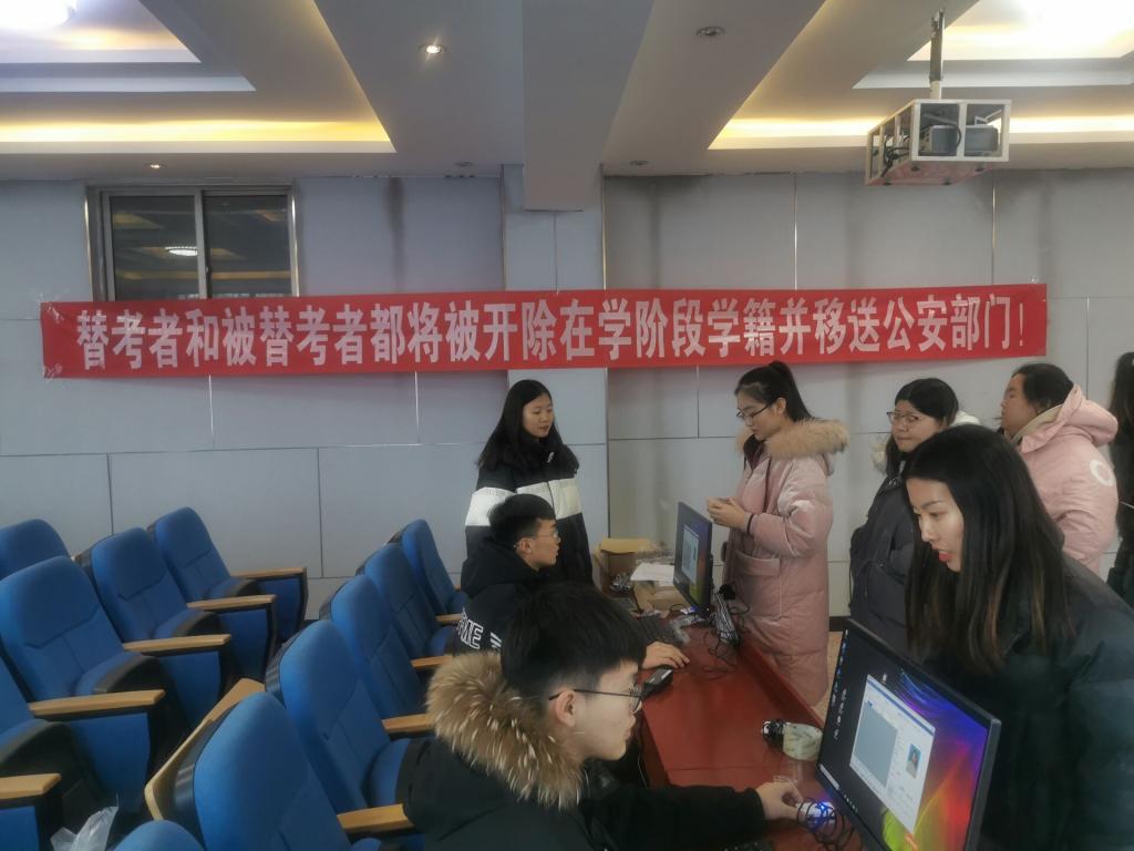 2019年12月19日,为了公司专科员工顺利进行专接本考试,tyc122cc太阳成人才招聘办配合人才招聘处在学术报告厅为17级心理咨询和学前教育专的268名同学进行专接本考试指纹采集工作。