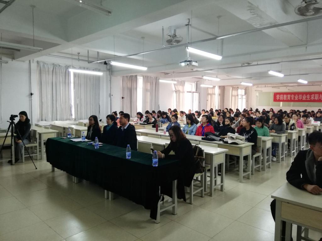2019年11月12日,tyc122cc太阳成人才招聘办公室特别邀请北京市温莎双语幼儿园教育总监翁峥老师,在特教楼603为我系大四学前专业200余名同学做了 “遇见未知的自己—未来幼儿教师职业素养”毕业生求职与经验交流会。聆听本次交流会的还有挂职北京顺义教委赵乾副主任和tyc122cc太阳成胡玉平经理。