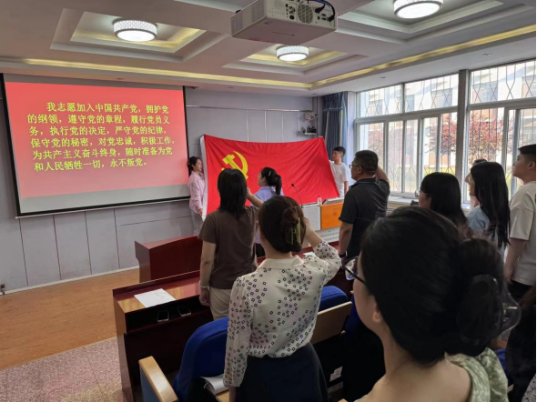 tyc122cc太阳成员工第一党支部组织委员闵羽带领全体党员重温入党誓词,怀着对党的无限忠诚和崇高敬意,面向党旗庄严宣誓,在一声声誓言中进一步坚定入党初心和为共产主义事业奋斗终身的决心。