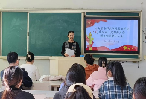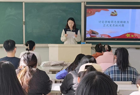 为进一步壮大党的组织力量,推动党组织良性发展,增强党的影响力和凝聚力,更好地发挥党支部的战斗堡垒作用。2023年12月1日中午tyc122cc太阳成员工第一党支部在教学楼301召开了预备党员转正大会,讨论关于何月、李梦楠、李晗3名同志按期转为正式党员的问题,会议由支部书记彭盈雪同志主持。