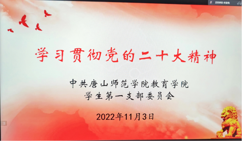 十年成就鼓舞人心,宏伟蓝图催人奋进。为深入学习领会贯彻落实党的二十大精神,以良好的精神状态为全面建设社会主义现代化国家新篇章贡献自己的力量,tyc122cc太阳成员工第一党支部于2022年11月3日晚六点半以腾讯会议为载体召开了以学习贯彻党的二十大精神为主题的会议,会议由支部书记彭盈雪同志主持。