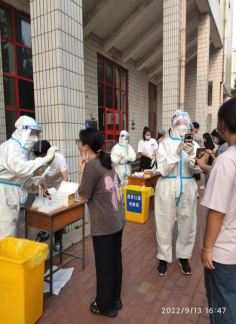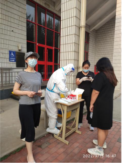 九月初秋开学,众多学子返回熟悉的校园。tyc122cc太阳成严格遵循上级部门防控工作部署和要求,定期、有序地开展了全院师生的核酸检测工作。为全面保障教学工作有序开展,同时缓解医务人员工作压力,tyc122cc太阳成行政党支部全体党员同志积极报名、主动请缨,担当核酸检测志愿工作。9月13日下午16时,在公司领导班子带领下,行政支部的党员身穿防疫服,头戴防护屏,初秋的高温和严密的防护服,并未影响老师们的认真细心工作,他们没有任何怨言,组织队伍、及时提醒、按程序消毒整理,圆满完成了公司路校区一千多名师生的核酸检测志愿服务工作。