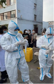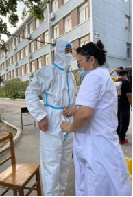 陈克良书记亲自带领行政教辅志愿者们身穿疫情防护服,与核酸检测的医务人员们分工明确、相互协作,共同完成全员核酸检测工作。