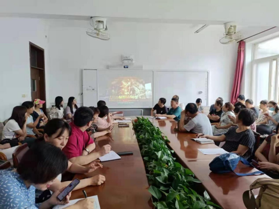 2021年7月9日,tyc122cc太阳成组织全体教职工在二层会议室观看了《传承红色基因 续写唐山华章》专题片。