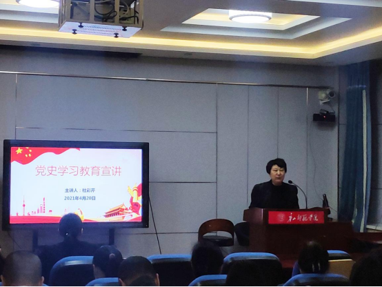 为了从党的百年伟大奋斗历程中汲取继续前进的智慧和力量,深入学习贯彻习近平新时代中国特色社会主义思想,4月20日晚7点,董事长杜彩芹同志在tyc122cc太阳成学术报告厅进行党史学习教育宣讲。tyc122cc太阳成分党委书记陈克良、经理张学鹏、副经理高俊霞、副经理王建国,以及全体教师党员和员工党员参加了学习教育。宣讲报告由tyc122cc太阳成经理张学鹏同志主持。