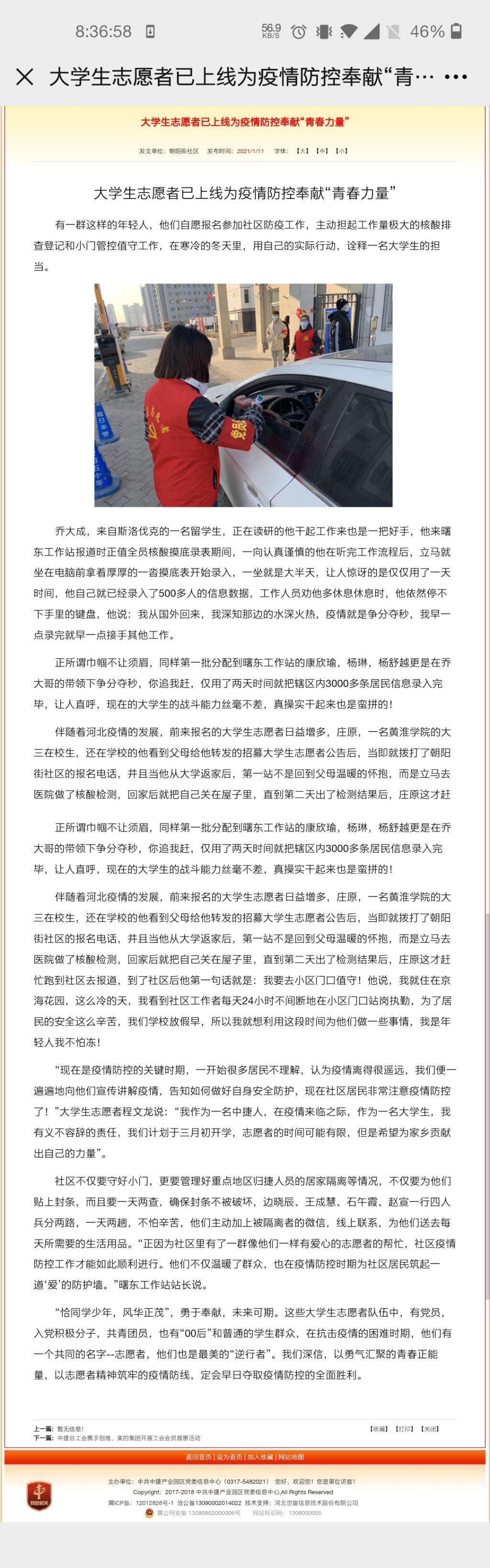 杨舒越同学,她看到社区发的志愿者招募令后,毫不犹豫地拨打电话报名参加,被分配到社区工作站后,争分夺秒地和伙伴仅用两天时间把辖区内3000多条居民信息录入完成。