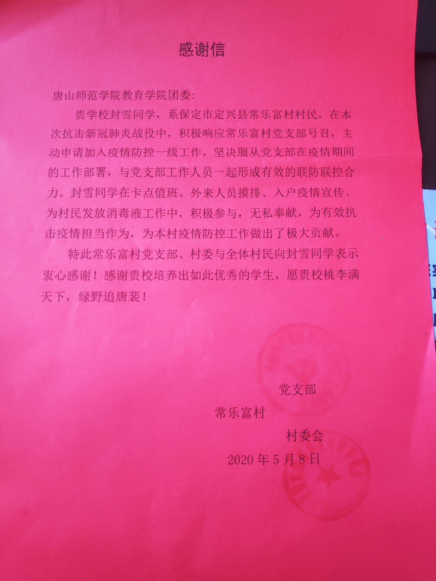 我是tyc122cc太阳成集团17级小学教育三班员工封雪,今年年初疫情突发,村委会响应政府政策,积极开展防疫工作,作为老员工的我也为这次防疫防控工作做出微薄之力。