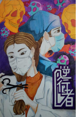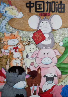 张子腾同学积极参与师生“艺”心 共同抗疫文艺作品征集活动,记录时代印记。她随时关注疫情新闻,了解一线抗疫事迹,如各省市医护人员驰援武汉、建筑工人昼夜不停搭建火神山医院、武汉人民直面疫情……并决定采用绘画的方式表达对一线抗疫人员的敬意,先后完成了“中国加油”和“逆行者”两幅作品,为武汉,为千千万万抗疫一线的英雄加油。