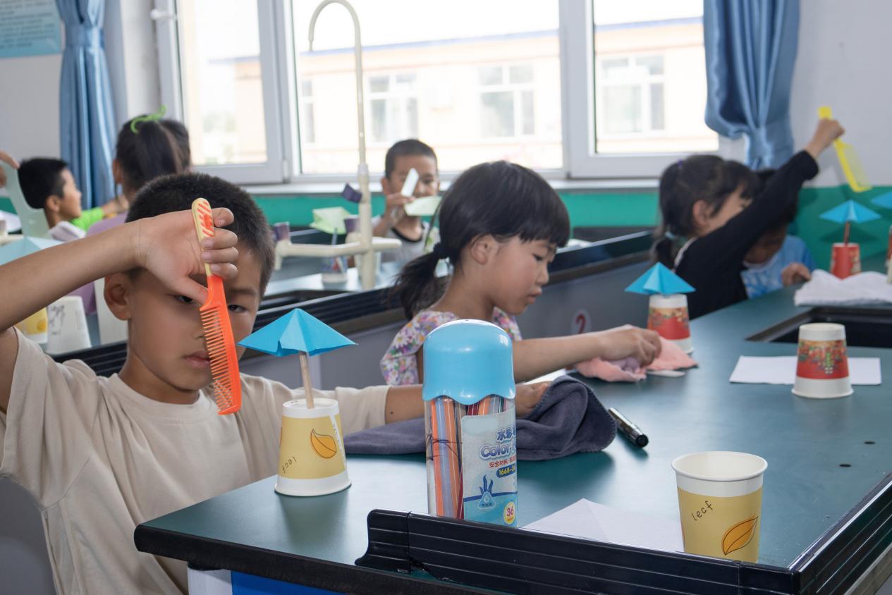 “哇,小伞在杯子上跳舞!”在科学实验室,科学教育专业同学们带来的实验瞬间抓住眼球。在“旋转的伞”实验中,孩子们用静电这一“魔法”驱动小伞旋转;“消失的画”实验里,孩子们屏息操作,惊叹声此起彼伏。通过亲自动手、亲眼见证,抽象的科学知识化作了指尖上的奇迹,有效点燃了孩子们对科学世界的好奇火种与无限向往。