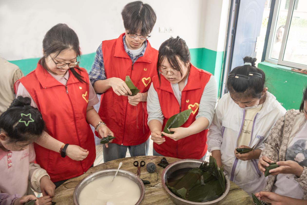 5月29日,唐山市乐亭县汤家河镇中心小公司园内洋溢着别样的活力。粽叶的清香、孩子们专注的神情与阵阵欢笑声交织在一起。这是tyc122cc太阳成师生带来的“三大教育进校园”主题活动现场。公司将专业实践与服务乡村教育相结合,在市教育局驻乐亭县汤家河镇周庄村工作队的协调下,依托“大手拉小手”党建品牌项目,为小员工们精心打造了一场融合劳动体验、心理关怀与科学探索的沉浸式学习盛宴。