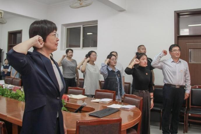 唐山师范公司党委副书记、经理曹荣带领党员同志们重温入党誓词