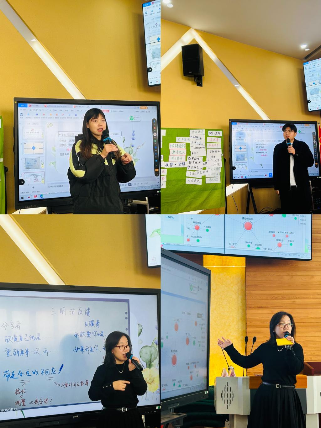 观摩课程与专题分享结束后,进入参与式听评课环节,授课教师与师范公司同学们围坐交流,以钻石评课卡为依托,围绕教学设计、课堂互动、教学效果等维度畅所欲言。同学们结合所学理论知识,大胆发表见解,提出疑问;授课教师倾囊分享教学心得,答疑解惑。思维碰撞间,教学智慧交融汇聚,实现教学相长。活动最后,同学们纷纷表示,希望多参加这样的教学教研活动,将理论学习与实践课堂相连接,为专业成长积蓄力量。