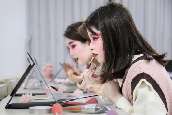 课程以“戏曲妆容里的美学原理”为主题,注重理论性与体验性、互动性相结合,特别是戏曲扮相中的大扮、古扮和越扮,激发了同学们的浓厚兴趣。23学前一班的霍雅婷说:“上了罗老师的品质鉴赏课,我深深地体会到了服饰服装以及妆造的美丽,让我深深的爱上了评剧鉴赏课。”
