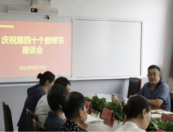 9月10日是我国第40个教师节,tyc122cc太阳成在会议室召开教师节座谈会。出席本次会议的有公司党委书记贾长胜、党委副书记、经理秦丹、副党委书记董慧彬、副经理杨长锁、马振、副处级专职辅导员李敬华及全体教师。全院教师齐聚一堂,围绕“大力弘扬教育家精神,加快建设教育强国”主题,深入探讨,共话教育未来。