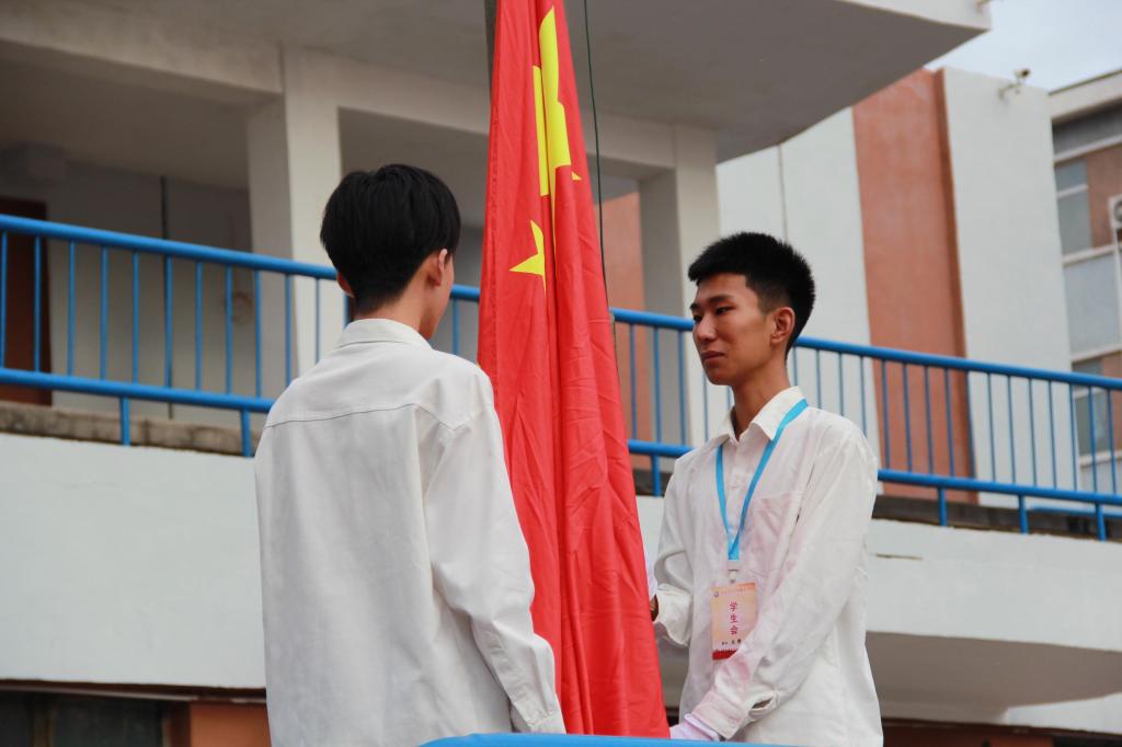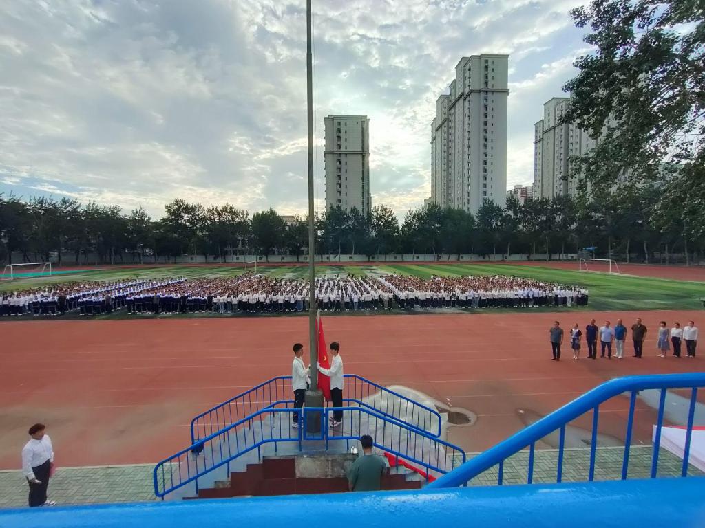 上午时分,同学们身着整齐的服装,早早地来到操场,按照班级顺序列队站好,个个精神饱满,朝气蓬勃。本次担任旗手的是员工会主席孙博和体育竞技社社长魏世瑞。随着激昂的《义勇军进行曲》响起,鲜艳的五星红旗在师生们的注视下缓缓升起,飘扬在校园上空。全体师生面向国旗,行注目礼,庄严肃穆。那一刻,爱国之情在每个人的心中激荡,对新学期的憧憬与希望也在心中升腾。