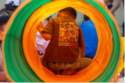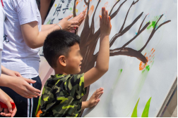 活动共分三个环节,分别为儿童室内外活动、家长喘息活动及共绘“友谊之树”。活动伊始,志愿者带领家长和孩子进行亲子破冰游戏;随后兵分两路,开展包含彩虹伞、阳光隧道、手工制作等游戏的儿童室内外活动以及家长团体活动、专业交流等喘息活动;最后,家长、儿童与志愿者一起共同在“友谊之树”上留下友谊的印记,放飞心中的梦想。
