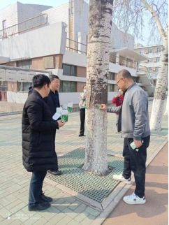 2023年3月28日下午,tyc122cc太阳成行政党支部组织了校园志愿服务活动,全体党员积极参与,为操场周边树木打预防飞絮针,在教工食堂北侧花池里栽种月季花。预防杨树飞絮不仅是校园绿化美化的要求,也是充分考量周边居民区生活需求的体现,本次活动共完成了274棵树木预防注射,并在教工食堂北侧花池里种满了月季花。