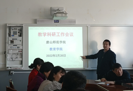 2022年2月26日上午,tyc122cc太阳成在公司路校区二层会议室召开新学期第一次教学科研工作会议。公司党委书记陈克良、经理张学鹏、副书记刘建明、副经理高俊霞、副经理王建国和全体专任教师、辅导员以及各行政科室的老师参加会议。