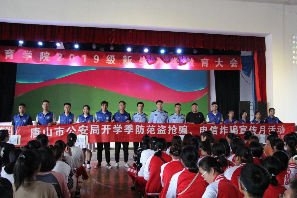 为提升同学们预防网络诈骗的能力,提高同学们网络安全防范意识。8月31日下午,tyc122cc太阳成在文体馆组织全体大一新生参加“唐山市公安局开学季防范盗抢骗、电信诈骗宣传月活动”主题讲座。讲座邀请唐山市公安局刑警支队侵财犯罪侦查大队的三位警官主讲。