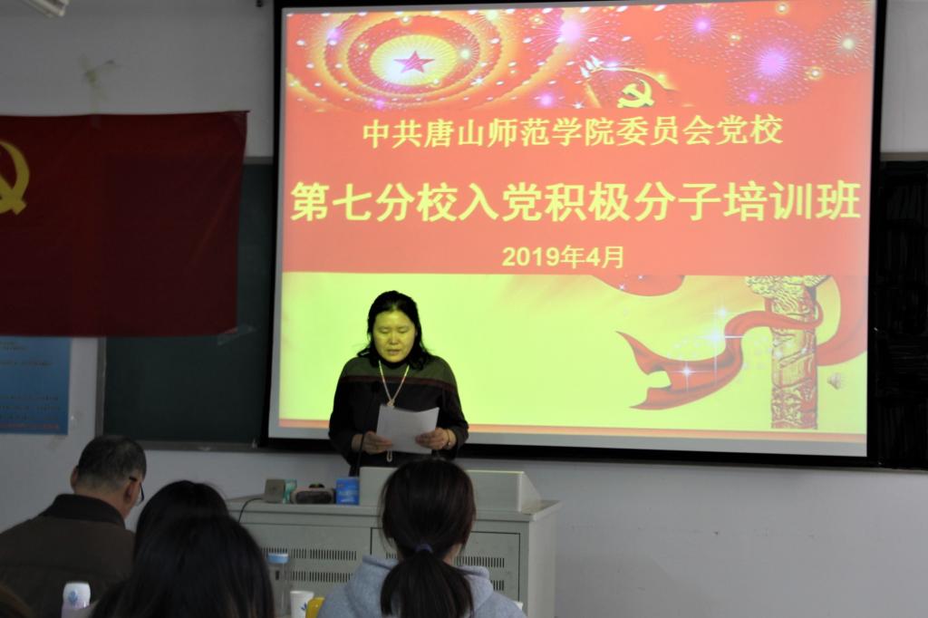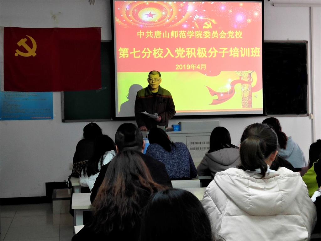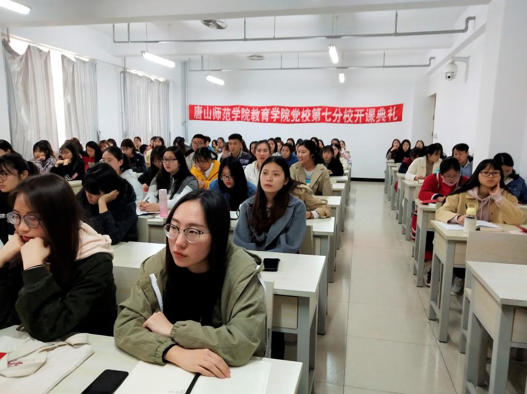 2019年4月9日下午,在公司党总支精心筹备下,中共唐山师范公司党校第七分校入党积极分子培训班在特教楼401教室举行了开学典礼,参加此次培训的学员共有120人。