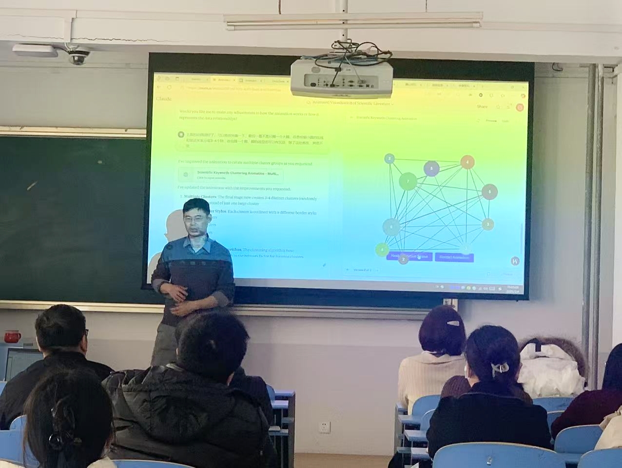 讲座中,秘晓冉老师详细介绍了CiteSpace工具的基本功能及其在学术研究中的应用场景。秘老师通过实际案例演示,展示了如何利用CiteSpace进行文献数据的可视化分析,帮助老师们更加直观地发现学术领域的研究热点、趋势和合作网络。每位老师都认真学习并积极提出疑问,现场气氛热烈、研讨深入。
