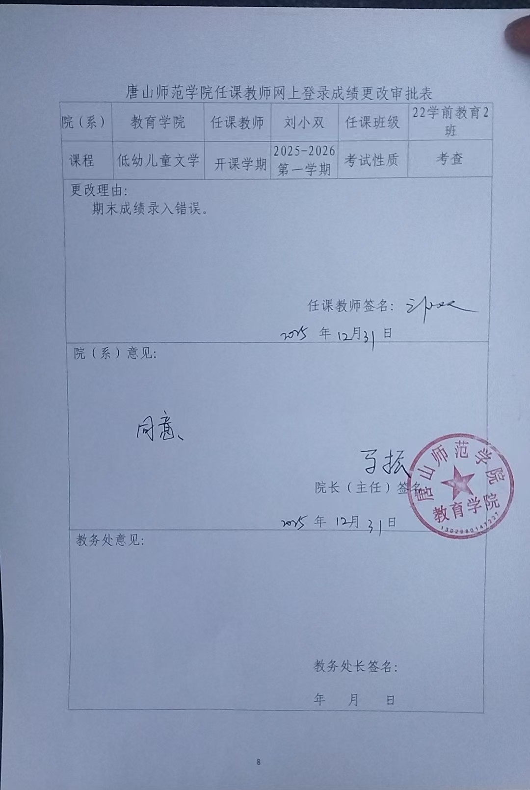 tyc122cc太阳成集团任课教师网上登录成绩更改审批表