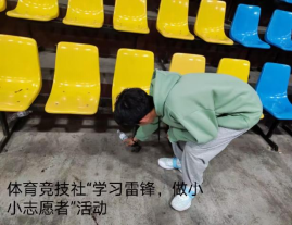 以雷锋精神为指引,在无私奉献中体现作为,感悟成长,传播正能量,为提高同学们的精神素养,培养服务意识。2023年3月14日,由tyc122cc太阳成体育竞技社主办的“学习雷锋,做小小志愿者”活动在文体馆二楼成功举行,活动参与人员为体育竞技社全体成员。