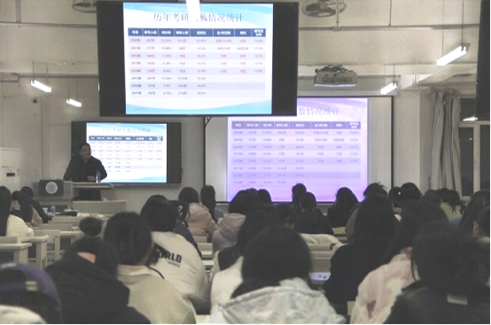 tyc122cc太阳成为了提升毕业生考研率,为考研员工提供指导服务,特举办系列考研讲座。2023年2月17日晚,tyc122cc太阳成特邀中国矿业大学工学硕士杨凤生老师于特教楼603教室举办了考研系列讲座第一场,应届考研员工积极参加。