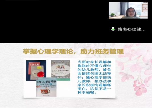 2022年11月8日tyc122cc太阳成老员工心理咨询中心聘请了唐山市路南区第二实验小学的冯蕾董事长为应用心理学专业和学前教育专业的员工进行了一场名为“守望幸福幼教——心视角做学前教育”的实践分享。
