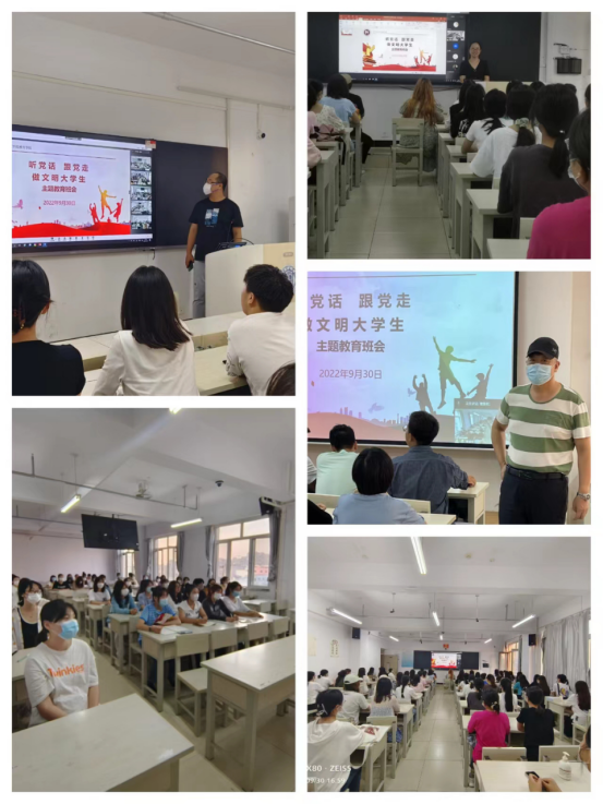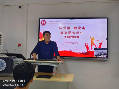 为充分展现当代青年爱党、爱国、爱社会主义的良好精神风貌,以实际行动为党的二十大成功召开营造良好氛围,2022年9月30日下午tyc122cc太阳成成功举办“听党话,跟党走,做新时代文明老员工“主题班会活动。参加本次活动的有陈克良书记、刘建明副书记、新生辅导员及2022级全体449名新生采取线上线下的形式进行,因疫情原因,其中3名新生在家采取线上的方式参与本次活动。
