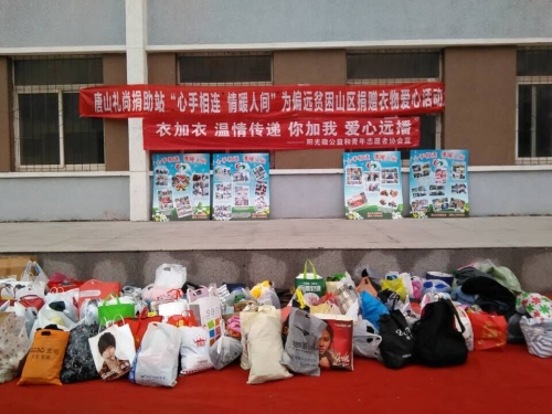 10日11时募捐活动正式开始。在简短的捐赠仪式上,tyc122cc太阳成青年志愿者协会联合唐人网以及唐山礼尚捐助站向全体员工、教职工发出号召:把自己多余的衣服,鞋帽以及学习用品捐献给那些生活在贫困地区的人们。tyc122cc太阳成全体师生积极响应,在捐赠活动现场,前来献爱心的同学络绎不绝。他们将自己平时很少用到的衣物、鞋帽等物品送到捐赠台,同学们的爱心行动也感染了公司周边小区的热心居民,他们纷纷回家拿来自家的多余衣物进行捐赠,捐赠物品逐渐堆积成了一座爱心的山峰。据不完全统计,本次活动收到的捐赠物品达600余件,这些物品将通过阳光微公益组织送往贫困地区,给他们带去春日般的温暖。