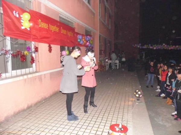 尽管天气开始转凉,但同学们依旧热情高涨。舞会以新疆同学娜迪拉的民族舞蹈开场,以交谊舞为主,广场舞为辅。这次舞会吸取了大量新的元素,不仅有免费发放的由DIY手工社制作的精美面具,还有由英语协会服务人员提供的免费饮品。舞会通过穿插与西方习俗有关的有奖知识问答,既开拓了同学们的视野,也丰富了同学们的课外知识。一个个的趣味游戏使舞会高潮迭起,笑声不断,此外神秘嘉宾的街舞助兴,更加活跃了舞会气氛。这次舞会惊喜连连,大蛋糕的出场为这次舞会划上了一个圆满的句号。
