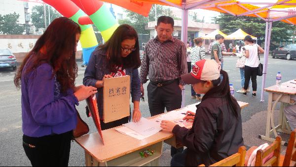 凌晨五点,公司接站专车前往唐山站接站。保安人员在迎新现场指挥车辆。新生一进入校园就有志愿者主动上前接过行李箱,为家长提供纯净水。引导新生在相应的窗口验证、办理注册手续,整个报到流程均有志愿者全程服务。