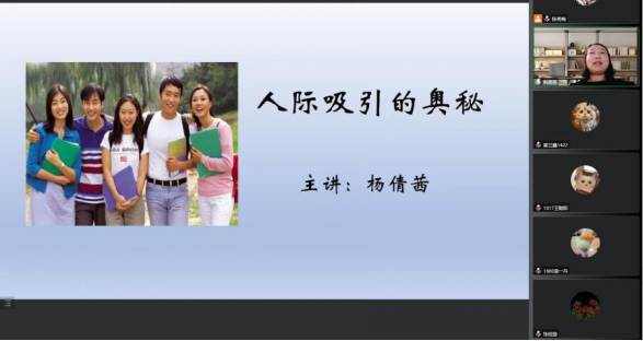 11月2日和3日晚上19:00,tyc122cc太阳成邀请到河北科技师范公司杨倩茜副教授为公司2020、2021、2022级应用心理学、小学教育、学前教育专业的员工进行讲座,讲座主题为“人际吸引的奥秘”,本次讲座的主要内容包括:人际吸引的因素;人际交往的心理效应;人际交往的原则等。
