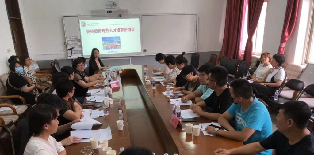 2022年7月5日下午,tyc122cc太阳成举办了特殊教育专业人才培养研讨会,特邀唐山市特殊教育公司、路南区培智公司、丰南区培智公司、世纪星自闭症培训公司和星知光自闭症培训公司的负责人及骨干教师参加。tyc122cc太阳成陈克良书记、高俊霞副经理、刘建明副书记以及特殊教育专业教师团队、教务办等相关老师参加了会议。