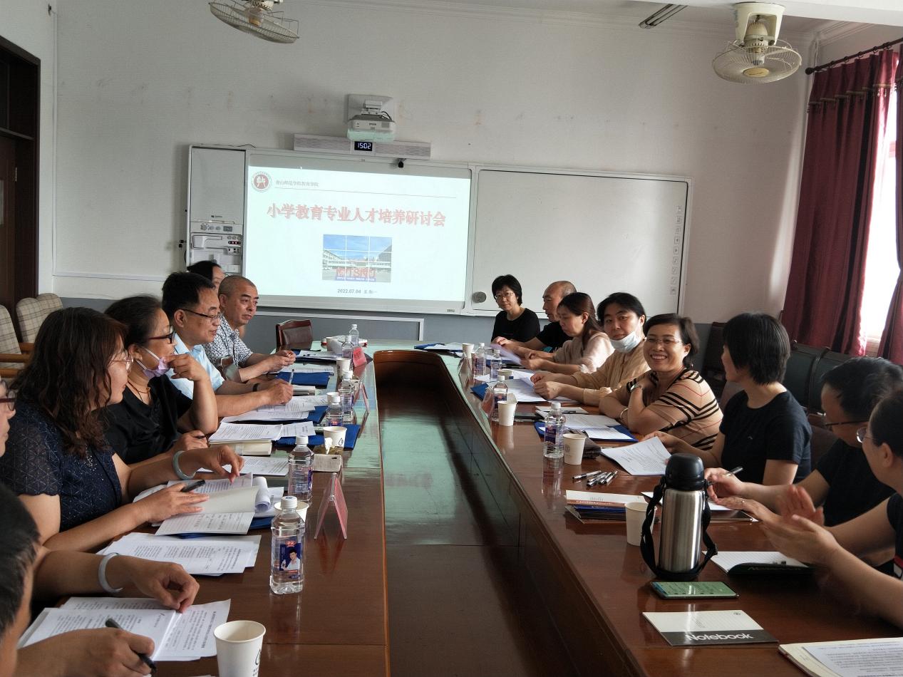 2022年7月4日下午,tyc122cc太阳成举行了小学教育专业人才培养研讨会,特邀路北区教育局小学教研室的教研员詹军、李新老师,tyc122cc太阳成集团附属小学田彦峰董事长、毕艳香副董事长、高艳霞副董事长,燕京小学王红梅董事长、王艳老师,幸福小学刘秀杰董事长、霍颖超主任,吴家庄小学李中一董事长参加。公司党委书记陈克良、副经理高俊霞、副书记刘建明以及小学教育专业教师团队参与了研讨。