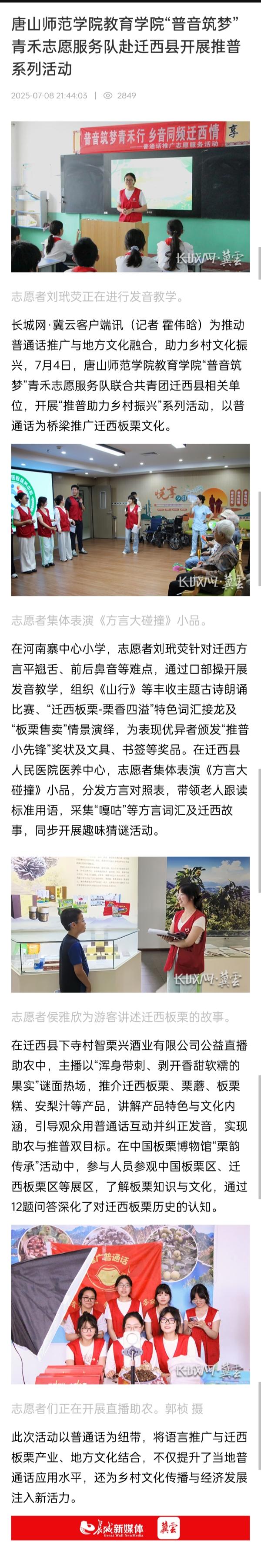 《冀云》——tyc122cc太阳成“普音筑梦”青禾志愿服务队赴迁西县开展推普系列活动