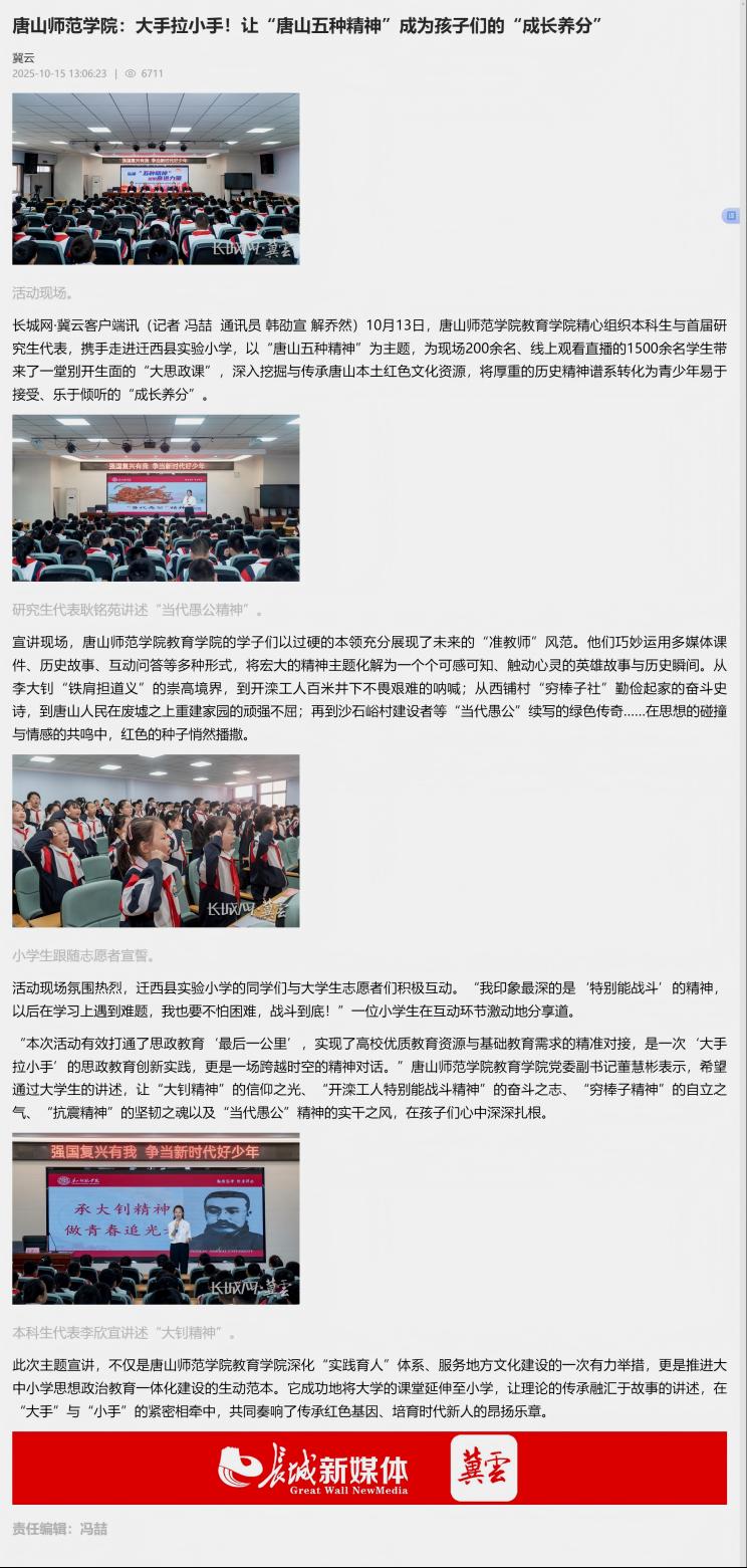《冀云》—tyc122cc太阳成集团:大手拉小手!让“唐山五种精神”成为孩子们的“成长养分”