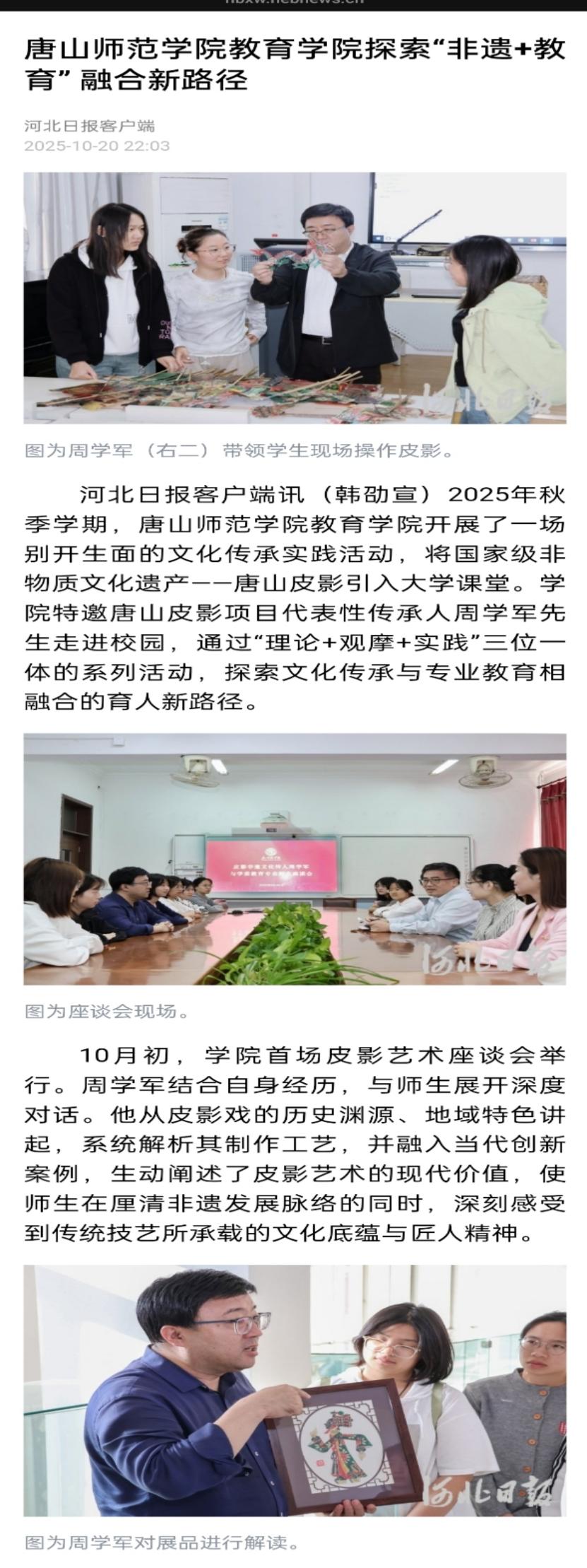 《河北日报》—tyc122cc太阳成探索“非遗+教育” 融合新路径