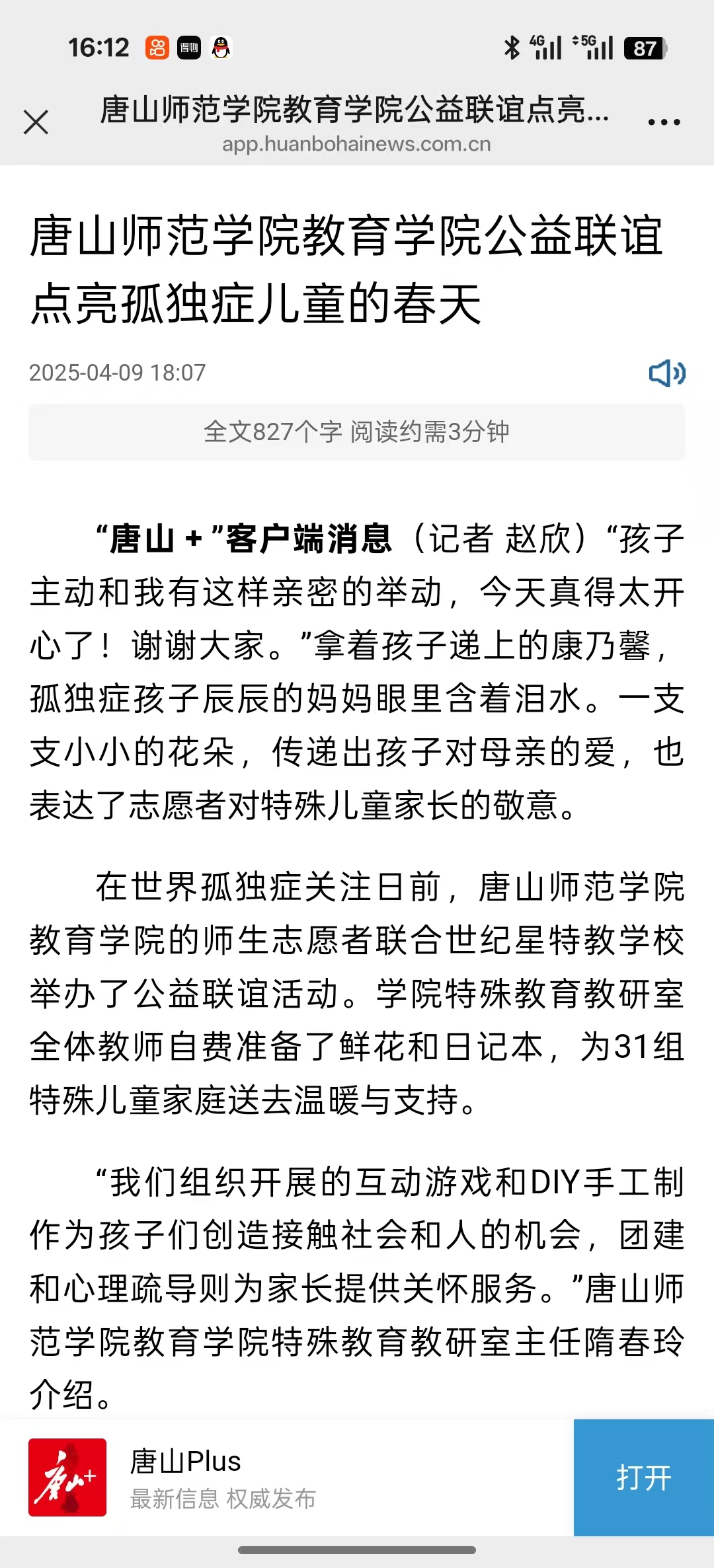 《唐山plus》-tyc122cc太阳成公益联谊点亮孤独症儿童的春天
