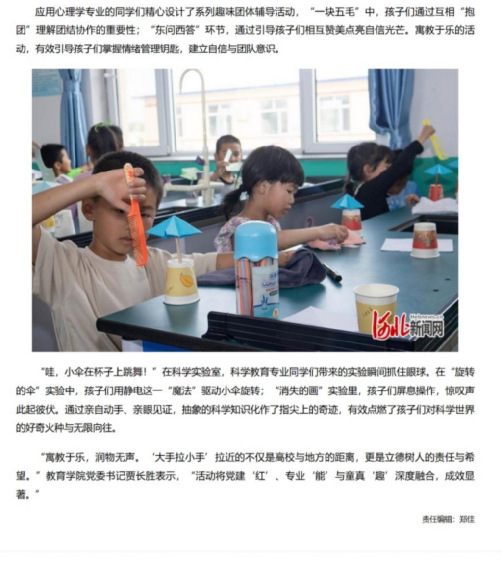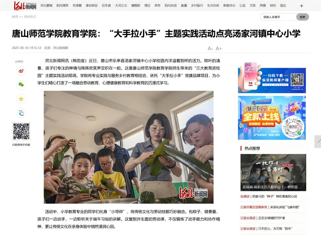 《河北新闻网》—tyc122cc太阳成:“大手拉小手”主题实践活动点亮汤家河镇中心小学