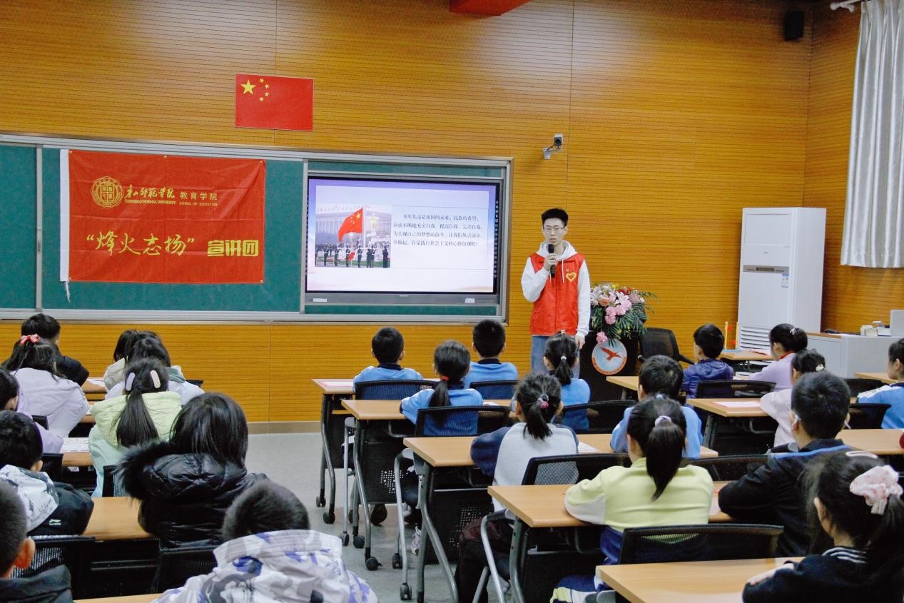 (宣讲团成员蒋宗儒为同学们带来国家旗帜相关知识)