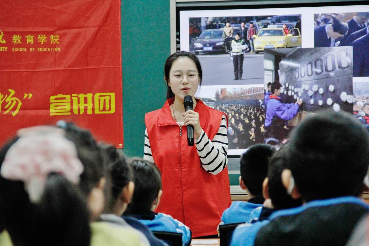 (宣讲团成员李欣宜为同学们讲述南京大屠杀的历史)