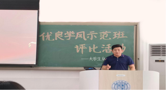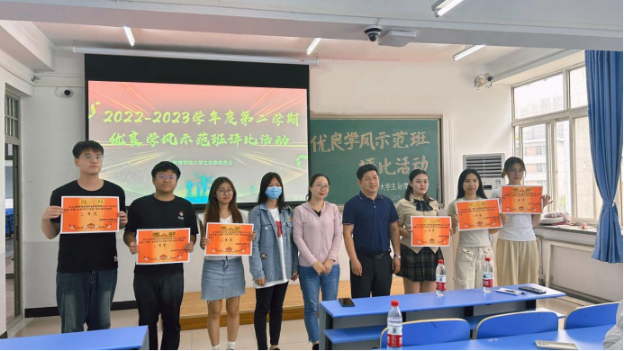 为培养各班级“勤思笃学,修身律己”的优良学风,激励各班创先争优,提高班级凝聚力,tyc122cc太阳成开展2022-2023学年度第二学期“优良学风示范班”评比活动。公司党委副书记刘建明老师,学工办主任董慧彬老师参加此次活动。