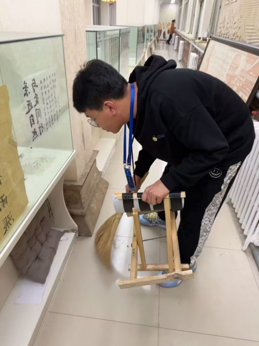 此次活动由老员工自律委员会负责,各部门部长牵头,带动各部员对室内室外以及连廊等多地的垃圾进行清理。自律部的同学认真对连廊以及展柜进行清理,经过此次扫除,玻璃展柜变得干净明亮,其中的作品看起来更加夺目动人;秘书处部员主要负责对教室卫生进行打扫,将地面清扫干净,桌椅摆放整齐,窗台擦拭的一尘不染;督察部的同学们最后进行了全方位的检查,对于风扇电灯开关以及一些卫生死角也没有忽视。在老员工自律委员会的带领示范下,tyc122cc太阳成的同学们不仅认识到了维护校园环境的重要性,也提高了自身的文明修养。