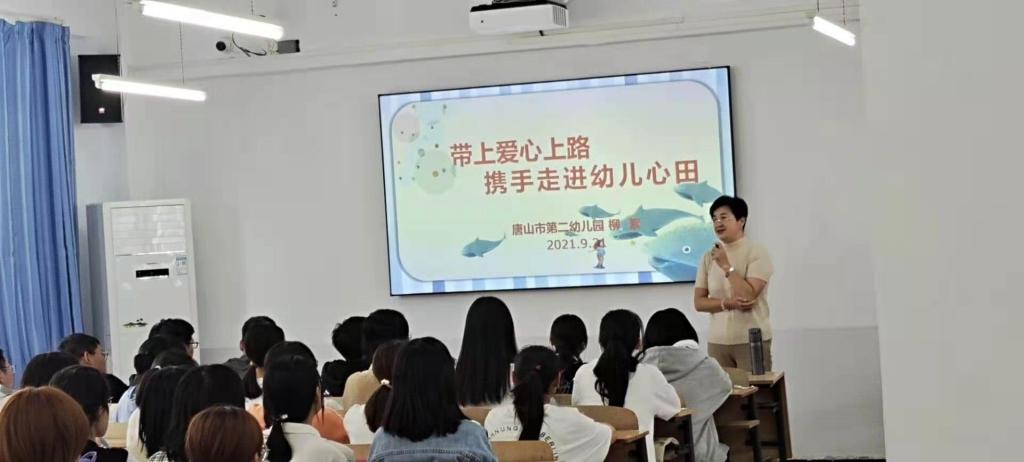时维九月,序属三秋。正值中秋佳节之际,唐山市骨干教师、唐山市第二幼儿园柳絮副书记21级学前教育本科新生开展讲座。这次的学习,为同学们今后的专业发展提供了方向与引领,同时也更新了教育观念。
